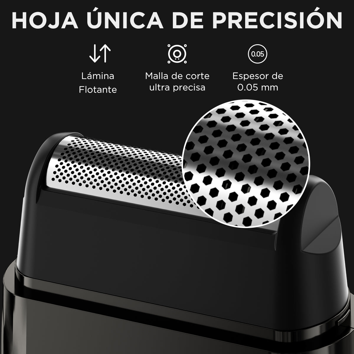La malla curva de la cuchilla de 0,058MM se adapta al contorno facial, reduce la fricción, no irrita la piel, afeita a fondo y cómodamente, adecuado para usuarios de piel sensible.
